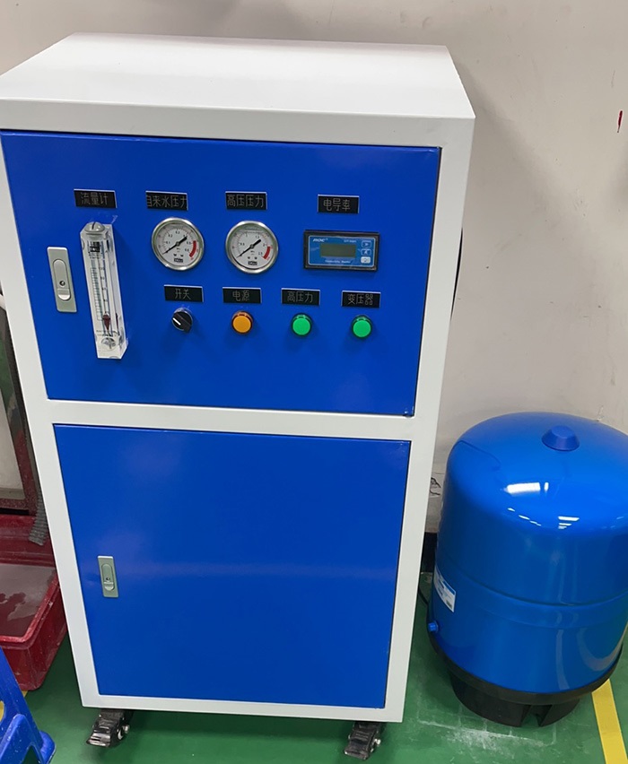 第五種原因:純水與濃水比,濃水流量多少也會影響產水電導;解決方法在水機運行時調節濃水閥,一邊調一邊觀察流量、產水電導,看產水電導達到數值要求即可。