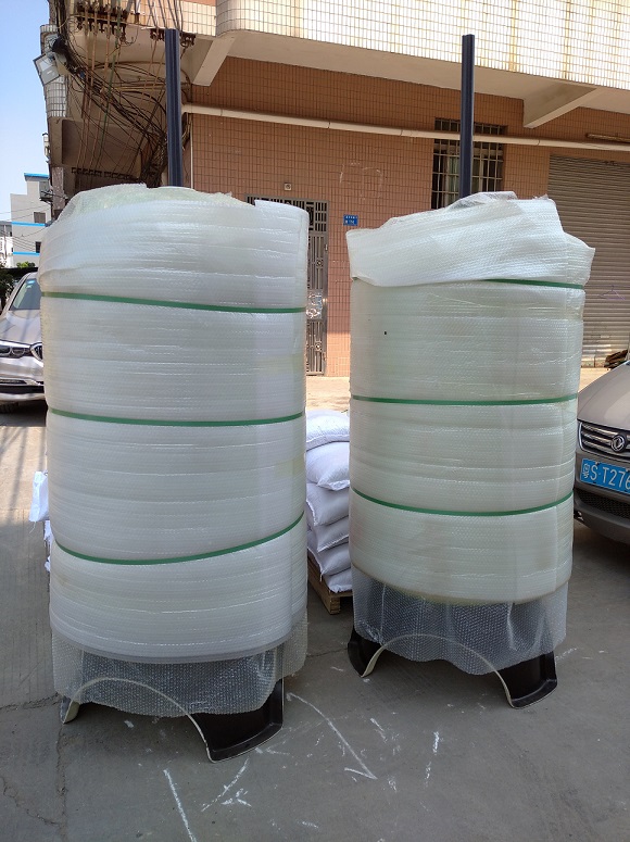 過(guò)濾器罐體材質(zhì)選用FRP玻璃鋼制造,過(guò)濾器的設(shè)計(jì)濾速10-15m/h,設(shè)計(jì)流量15噸/小時(shí)。