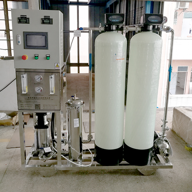 原水經(jīng)由原水箱及原水增壓系統(tǒng)進(jìn)入全自動石英砂過濾器、全自動活性碳過濾器、過濾去除原水中的大顆粒雜質(zhì)、懸浮物、膠體、有機(jī)物、余氯等。經(jīng)過預(yù)處理設(shè)備后的產(chǎn)水,進(jìn)入反滲透主機(jī),經(jīng)高壓系統(tǒng)增壓后進(jìn)入反滲透膜過濾系統(tǒng),對自來水進(jìn)行深度處理,將水中有害雜質(zhì)全部去除,達(dá)到深度凈化的目的。