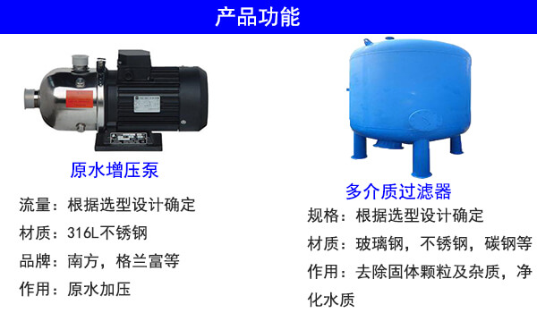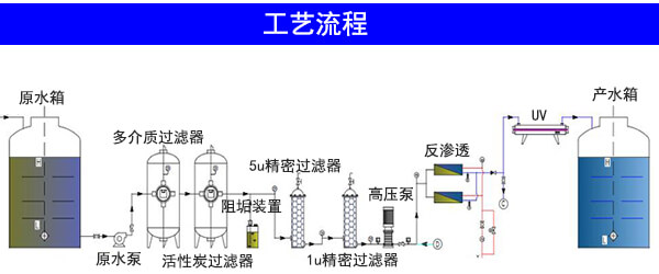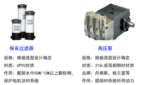 預處理系統一般包括原水泵、加藥裝置、石英砂過濾器、活性炭過濾器、精密過濾器等。其主要作用是降低原水的污染指數和余氯等其他雜質,達到反滲透的進水要求。預處理系統的設備配置應該根據原水的具體情況而定。